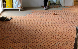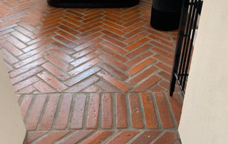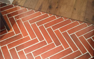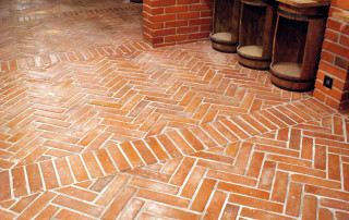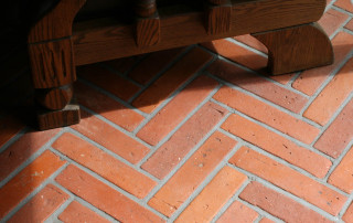 Terrakotta-Fliesen für den Boden im natürlichen, warmen Cotto- Farbton mit einzigartiger leicht differierender Oberflächentextur, leicht unregelmäßigen Rändern und stumpfen Kanten.